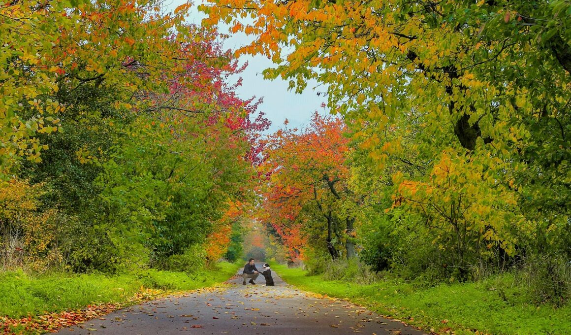 Senior dogs, on the other hand, require special considerations that prioritize their comfort and safety. Shorter walks, limited to 15-30 minutes, are typically ideal, allowing them to enjoy the outdoors without strain. Pay attention to their pace and be prepared to stop frequently for rest, especially during hotter weather. Choosing softer terrain can help protect their joints. For dogs showing signs of arthritis or similar issues, consider exploring less steep trails or taking them to local parks with manageable grass areas, permitting easier movement. During outings, always carry your dog’s water supply along with a collapsible bowl to encourage hydration at regular intervals. Stimulating their minds is equally essential. Incorporate tasks, such as engaging them with training exercises during breaks, keeping their brains active while you both enjoy nature. Look for pet-friendly hiking spots within shaded areas or easy access trails as these provide the ideal backdrop for your senior dog to enjoy the experience without causing undue fatigue. Adapting your walking schedule and environment based on their needs will significantly enhance their experience and comfort levels every time you venture out together.